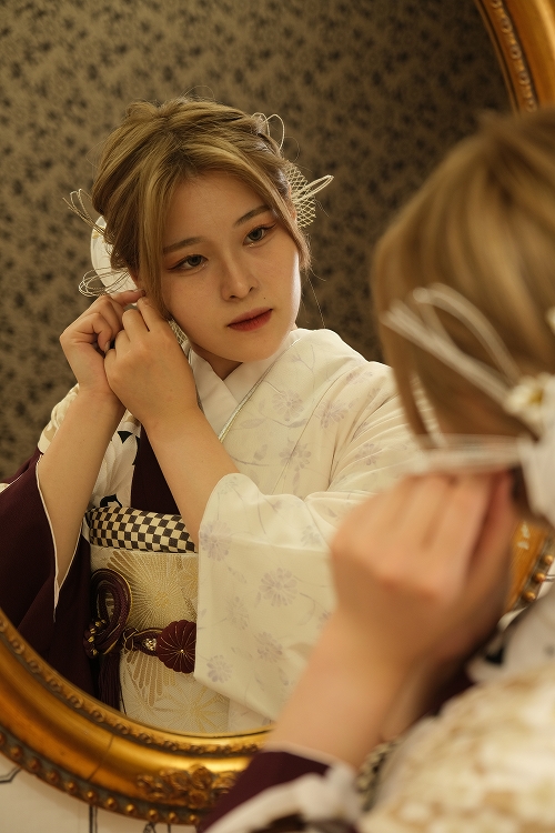 髪色も髪飾りも、振袖に合わせて素敵でした⭐🥰カッコイイ振袖を見事に着こなしていて、最高でした👍😍 |