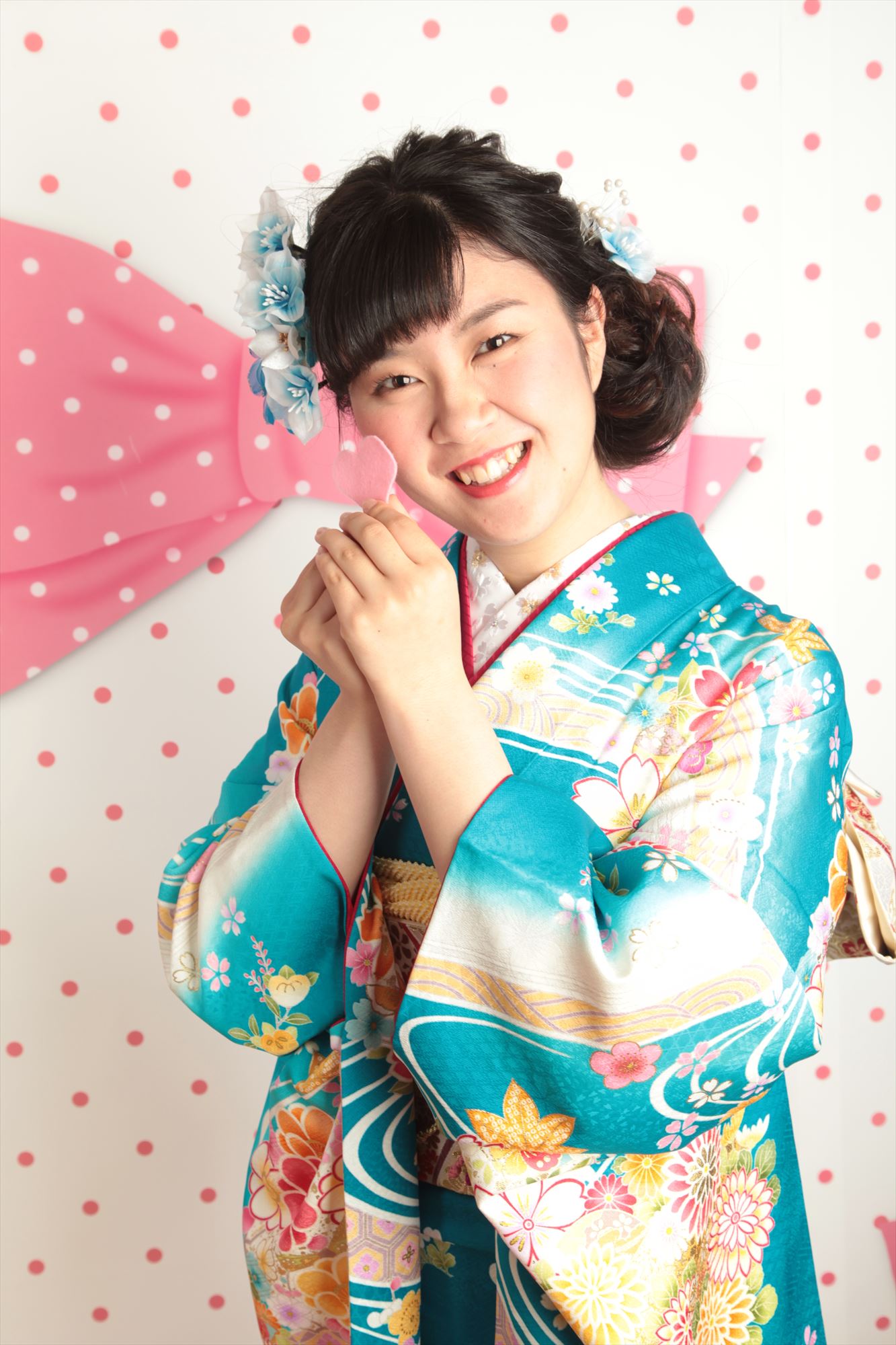 | スタッフより | 小花をたくさん散りばめた、流水が綺麗な鮮やかブルーの振袖? 色白なお嬢様のお顔に、良く映えています(*・ω・*) 髪飾り、振袖の色にピッタリですね