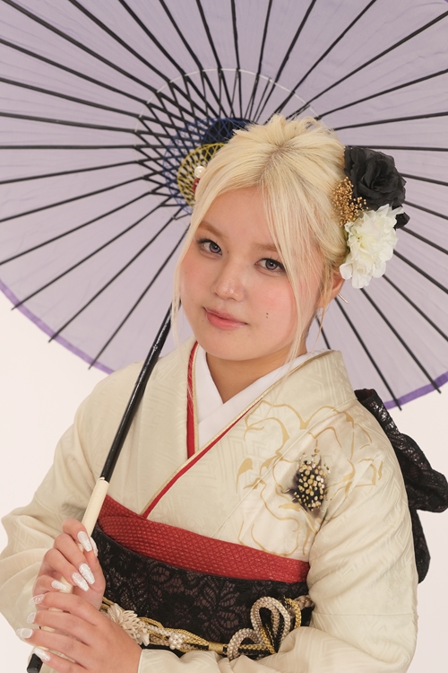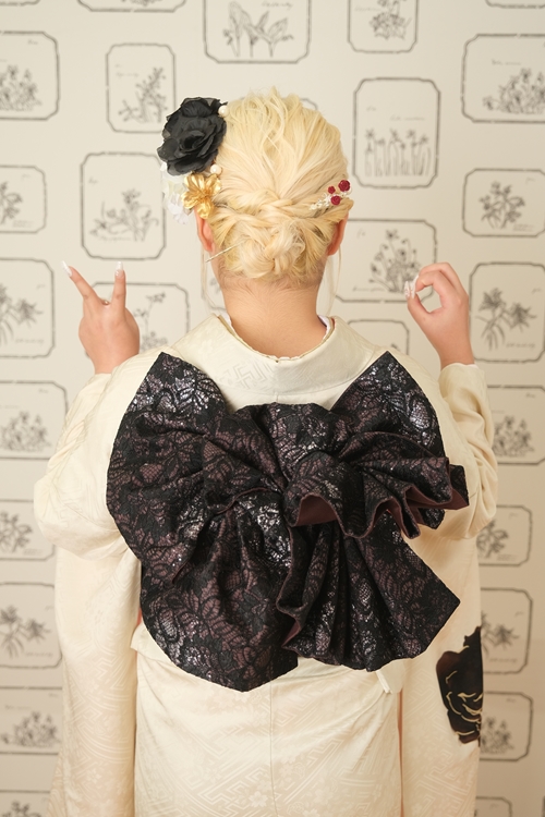 スタッフより | 気品漂う横姿が美しい、シックな白振袖×赤黒コーデ落ち着いた白地の振袖に、黒のレース帯を合わせたモダンで大人っぽいコーディネート。帯の立体感ある結びと、控えめながらも存在感のある髪飾りが、後ろ姿からも格の高さを感じさせます。重ね襟や帯揚げに使った深赤がアクセントになり、個性と華やぎをプラス。現代的な感性が息づくスタイルに。 横顔で見せる清楚な佇まいは、和装の美しさを引き立て、見る人の心を魅了します。 成人という人生の節目を迎えたあなたへ、心からお祝い申し上げます。日本の伝統美を現代風に着こなし、新たな門出にふさわしい凛とした姿がとても素敵です。これからの人生が幸多きものとなりますように。 |