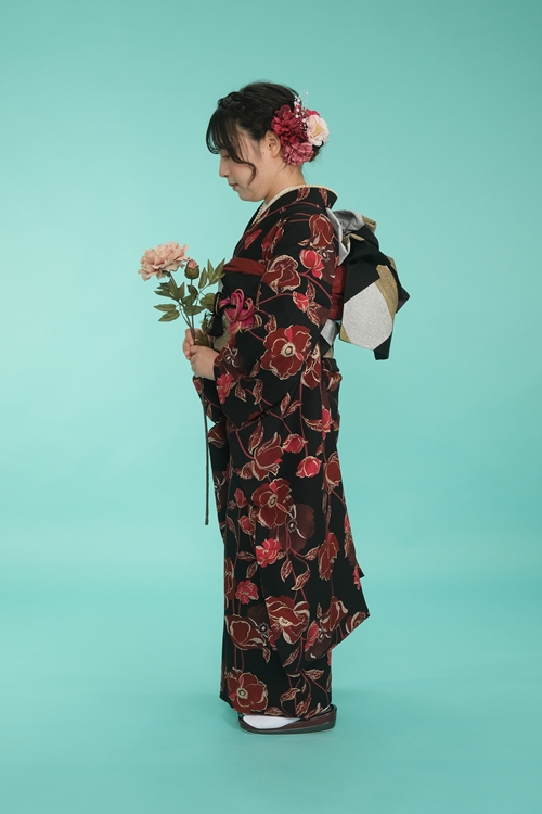 振袖スタイル | 黒×赤花の総柄振袖/玉城ティナ×紅一点 |