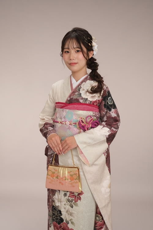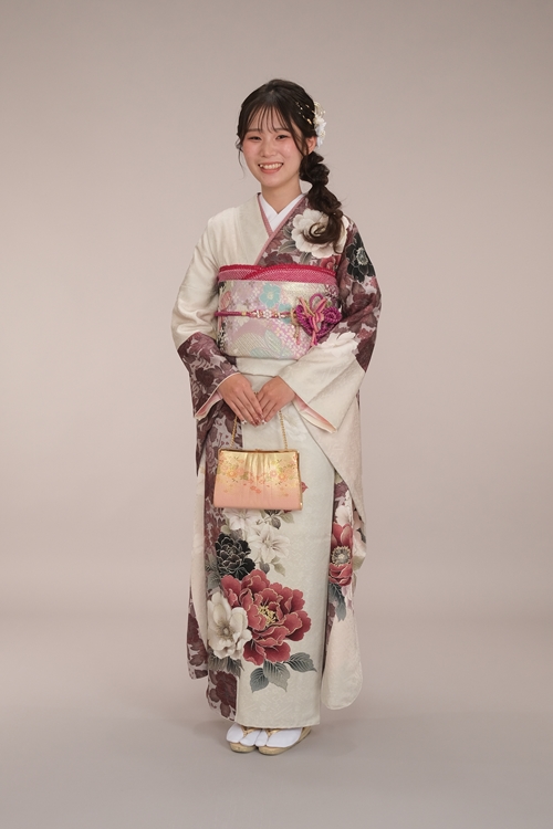 | スタッフより | くすみローズピンク×白地に大輪の花々が映えるレトロスタイル 深いローズピンクと柔らかな白地が染め分けになったレトロな振袖に、花々が咲き誇る女性らしい一着。シルバー地の帯が、全体の華やかさを引き締め、格式と美しさが調和した若々しいスタイルを完成させています。重ね衿や帯揚げにもピンク系統をプラスし、かわいさのあるコーディネートが完成。どの角度から見ても凛とした美しさが際立ちます。