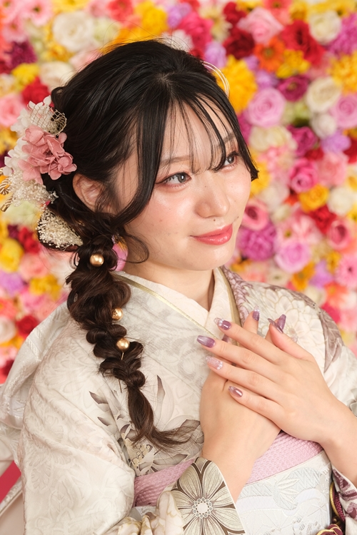 ご成人、誠におめでとうございます。新たな一歩を踏み出すこの特別な日に、あなたの輝く笑顔と気品あふれる振袖姿がとても印象的です。これからもご自身の魅力を大切に、素晴らしい未来を築いていかれますよう、心よりお祈り申し上げます。 |