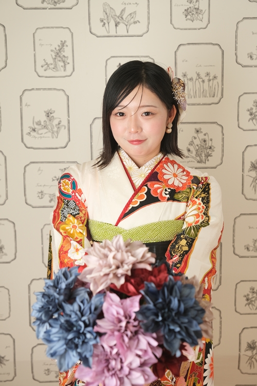落ち着いたまなざしと穏やかな微笑みからは、大人への一歩を踏み出した今ならではの品の良さと芯の強さが感じられ、とても魅力的な晴れ姿。振袖を自然体で着こなしているところが本当に素敵です。 ご成人、誠におめでとうございます。今日という特別な一日が、これまでの歩みを誇りに、これからの未来へ進む大きな力となりますように。振袖に咲く花々のように、これからの人生が彩り豊かで幸せに満ちた日々となりますことを、心よりお祝い申し上げます。 |