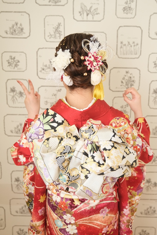 | スタッフより | 赤に咲く古典美、桜柄が映える気品あふれる振袖スタイル