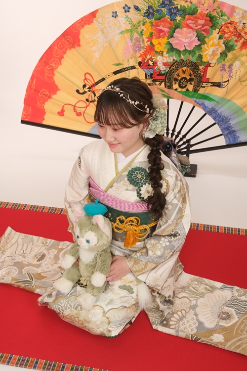 | スタッフより | やわらかな彩りに包まれる、上品で可憐な和の白振袖スタイル淡い白を基調に、金銀のやさしい色合いと緑の菊がふんわりと咲き広がる振袖は、落ち着きと華やかさを兼ね備えた一着。やわらかな色彩が全体に温もりを与え、晴れの日らしい優しい雰囲気を演出しています。帯には同系の深みのある緑色を合わせ、コーディネートにほどよい引き締めをプラス。 帯揚げや帯締めで差し色を加えながらも、統一感のある上品なスタイルに仕上がっています。サイドの編みおろしのヘアスタイルと落ち着いた表情がとても美しく、しとやかな魅力が際立つ一枚です。 凛とした佇まいの中に、やさしさと柔らかさが感じられ、振袖の持つ美しさを自然体で引き出している姿がとても印象的。特別な日だからこそ輝く、大人への一歩を感じさせる晴れ姿です。 ご成人、誠におめでとうございます。今日という大切な一日が、これまでの歩みを胸に、これからの未来へとつながる素晴らしい節目となりますように。振袖に咲く花々のように、これからの人生がやさしく華やかに彩られていきますことを、心よりお祝い申し上げます。 |