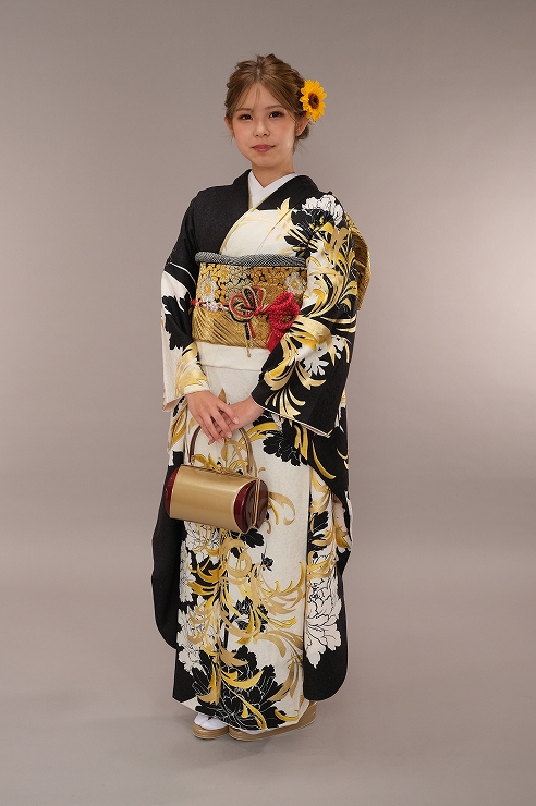 | 振袖スタイル | 白黒モノトーン&黄色のモダン振袖 |