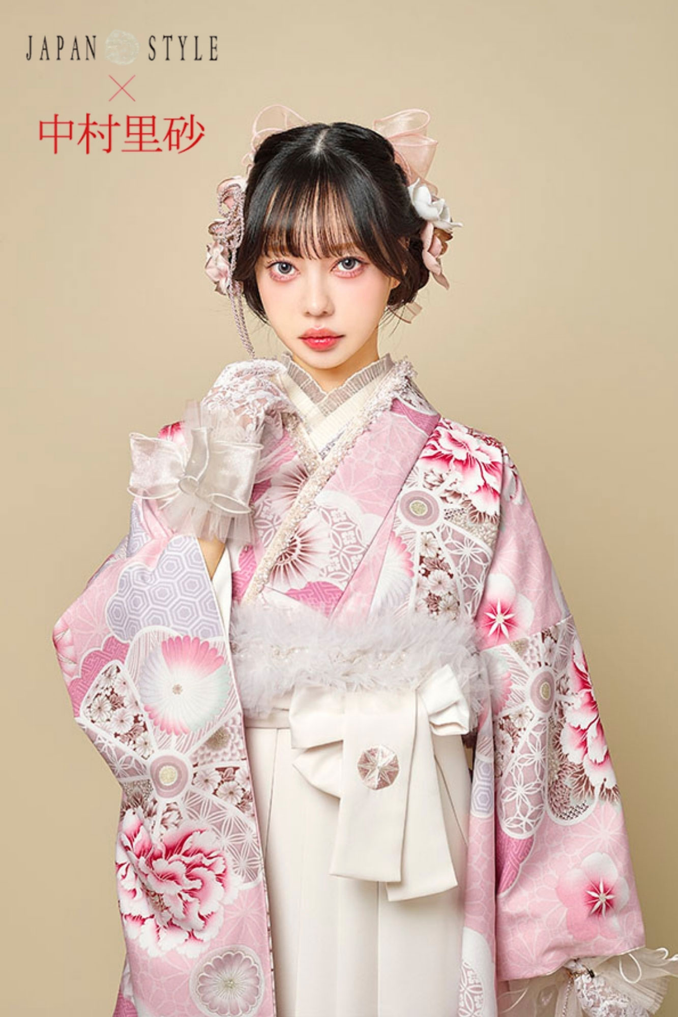 JAPANSTYLE×中村里砂 ピンクの着物と白袴がやわらかな雰囲気の卒業袴コーディネート